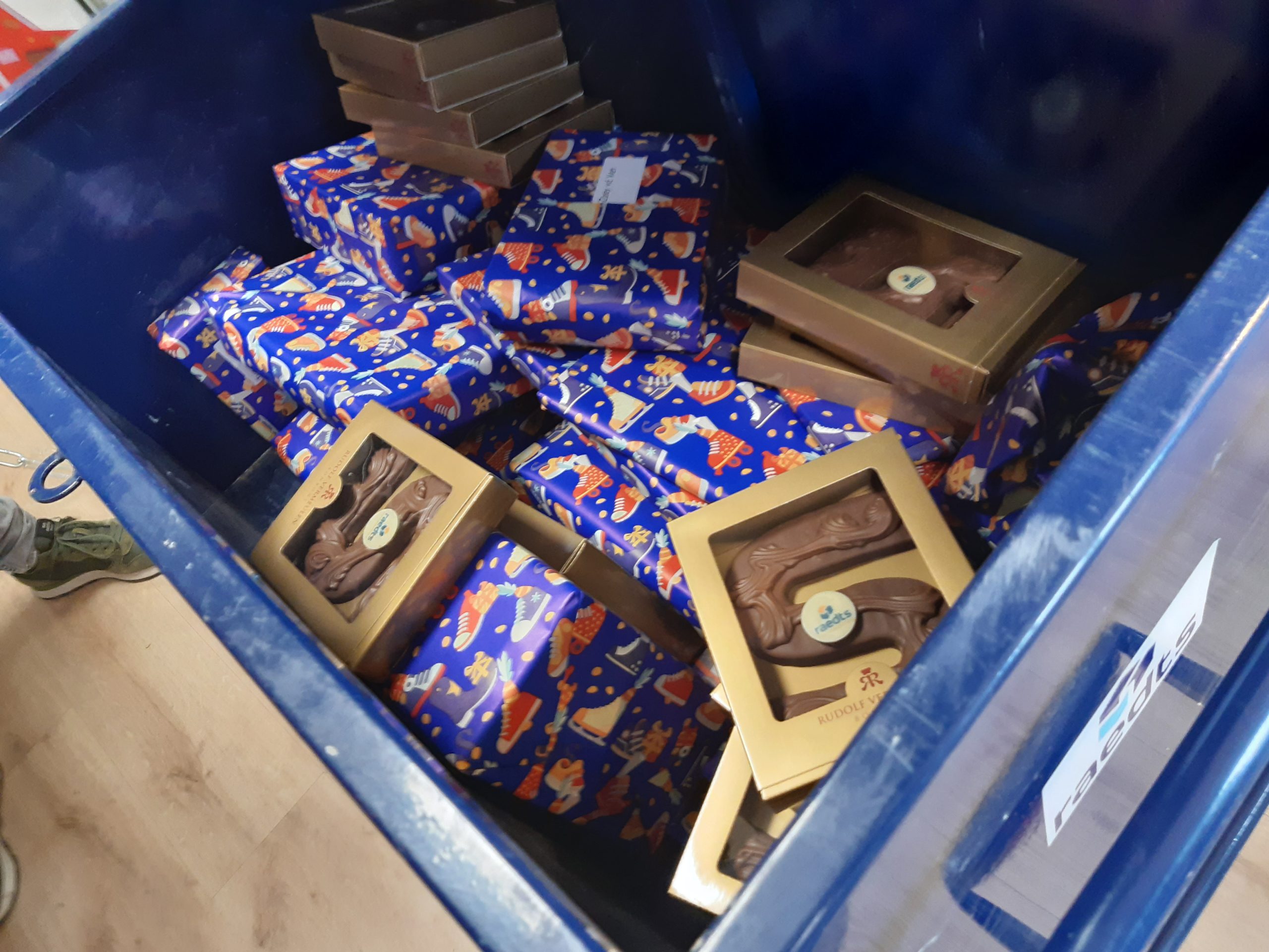 Sinterklaas had niet alleen een cadeautje voor de kinderen bij zich, maar ook voor alle medewerkers van Raedts een chocolade letter.